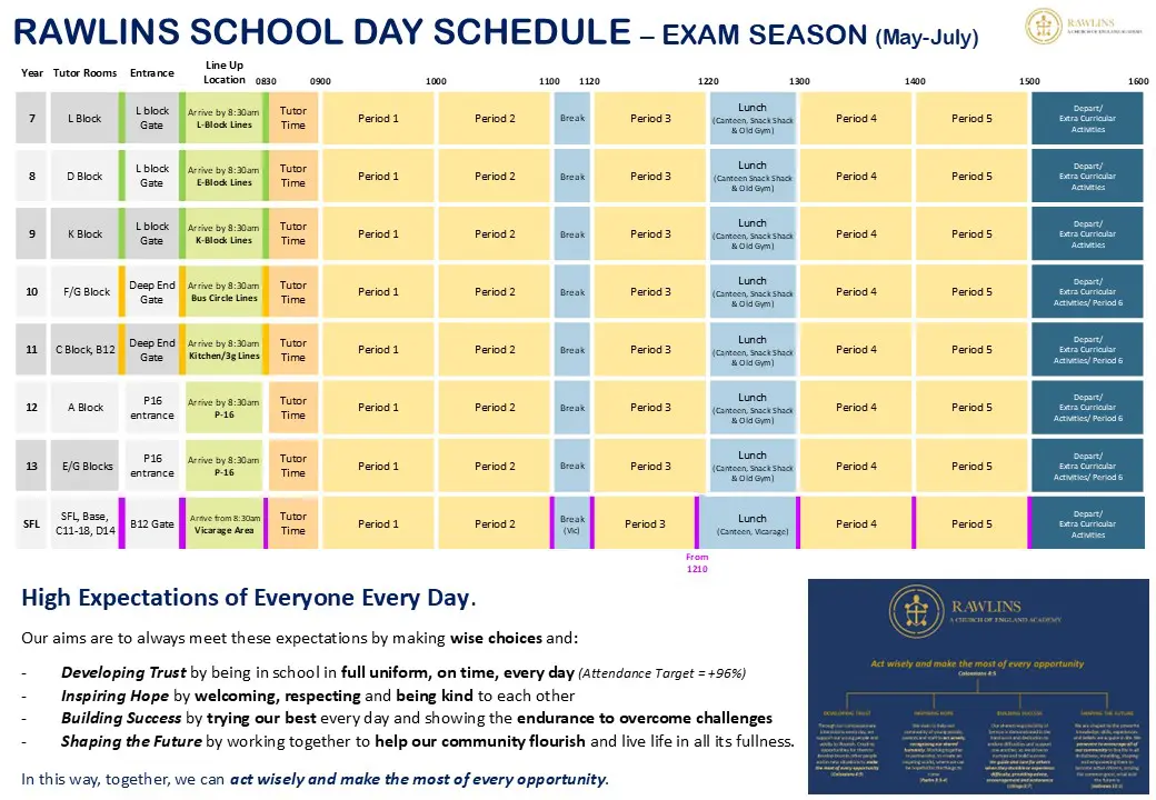 This totals 32.5 hours per week. In addition, some students will have scheduled Period 6 lesson(s), Academic Intervention(s) or Extra-Curricular Activities from 15:00 – 16:00pm.
