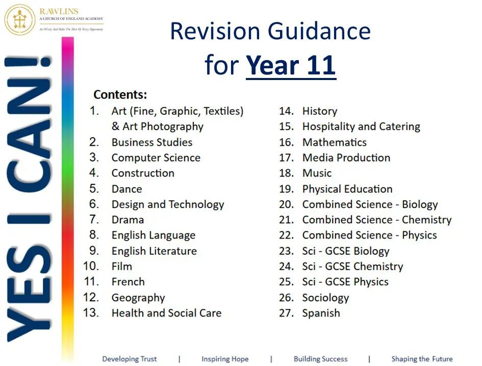 Y11 Revision Guidance – All subjects 2025/26