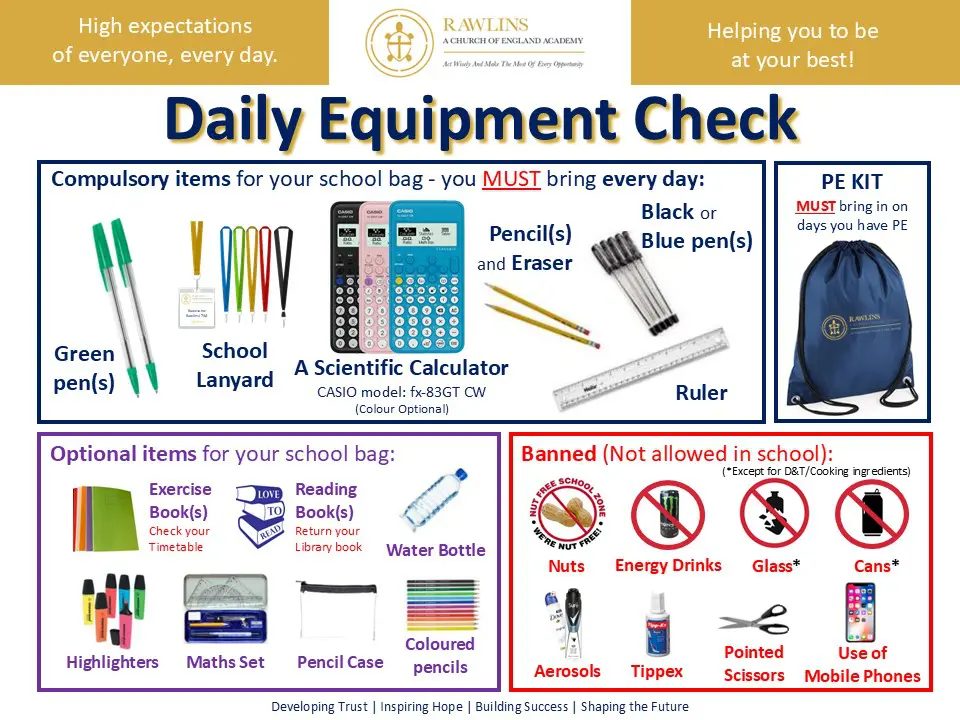 Every student needs to be prepared for school, with their full set of equipment, ready to learn and meeting our Student Expectations.